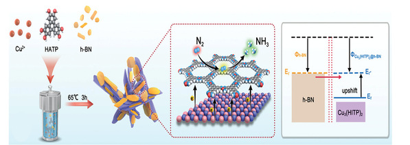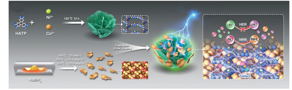 近日,杜淼教授和张治红教授团队针对电催化产氨和产氢存在的催化剂活性低、稳定性差和转化机理不清晰的问题,在材料和能源领域Top期刊《Advanced Science》和《Small》上发表高水平论文。异质结工程在半导体器件领域具有广泛的应用,通过利用不同材料的界面结构可实现材料的微观调控和优化,充分发挥不同材料的特性。受此启发,杜淼教授团队利用异质结工程,通过利用半导体金属框架材料(MOF)和硼纳米片形成p-n型异质结,并以等离子体处理方式在异质结材料中引入缺陷,从而形成高效电催化氮气还原的催化剂,实现的高氨气产率(28.26 ± 2.27 µg h−1 mgcat.−1)和法拉第效率52.92 ± 1.83%处于国际领先水平。该项工作发表在Adv. Sci. 2023, 10, 2205786(影响因子15.1,中国科电竞平台 一区,TOP期刊)。论文链接://onlinelibrary.wiley.com/doi/10.1002/advs.202205786