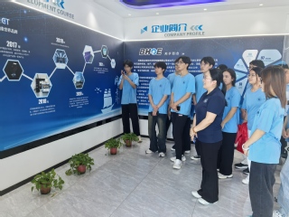 在走访交流中,李辉一行人与公司负责人、技术团队进行深入交流,从基础化工原料起步,逐步向高性能、高附加值的新材料领域延伸。在河南邦尼生物工程有限公司的展厅,技术专员展示了正在研发的各类新型材料鞋垫,李辉与工程师深入探讨不同材料的特性。并与河南邦尼生物工程有限公司签订实践基地协议,双方举行了实践基地挂牌仪式,为深化校企合作、搭建实践育人平台奠定了坚实基础。在新乡市百合光电有限公司,技术人员对展厅内商用级悬浮成像系统、高度国产化的光刻机、VR实景应用设备等高端光电设备进行深入讲解,并参与了小型光刻设备的校准体验环节。最后,在新乡市万新电气有限公司的生产车间,电竞平台 师生感受到了自动化设备的高效运转与严格质检流程,近距离观察行业领先的智能电容器等核心产品的精密制造与检测调试全过程,体会创新驱动和智能制造在现在企业中的重要地位。